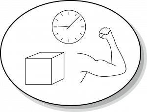 Das Konzepticon der Bewegungselemente veranschaulicht die Bewegungselemente mit den traditionellen Symbolen der Uhr für die Zeit, des Kubus für den Raum und des Oberarms mit angespannten Muskeln für die Anstrengung. Die ersten beiden Symbole sind nur aus der Außenperspektive treffend.