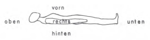 | Bezeichnung | - Mit gängigen Bezeichnungen übereinstimmend bei Kopf, Brustkorb, Becken. - Teils nicht übereinstimmend bei den Extremitäten aufgrund des spiralförmigen Verlaufs. - Hand- und Fußflächen haben beide Qualitäten. | |